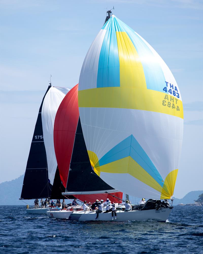 Thailand's Ithinai Yingsiri's Pine Pacific does what it does best - win, as it took both races today on corrected time in the exquisite three-boat Premier Class. The other two boats in this class (Shatoosh and Yasooda) are so sleek that they draw oohs and aahs from fellow competitors every time they swoosh by. The custom-built Yasooda (GER) really strut its stuff today taking line honours in the class in both races.