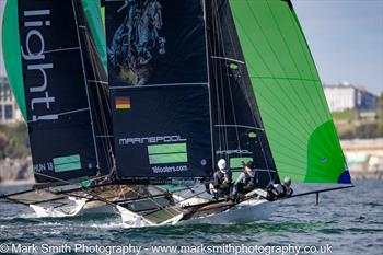 At the end of the revised 3-lap windward-leeward course, Sixt (Jacob Marks, Alex Marinelli, Rasmus Rosengren) crossed the finish line just 3secs ahead of Vaikobi (Kirk Mitchell, Andrew Stephenson, Daniel Barnett) with Smeg (Ash Rooklyn, Ricky Bridge, Max Paul) a further 24secs back in third place.