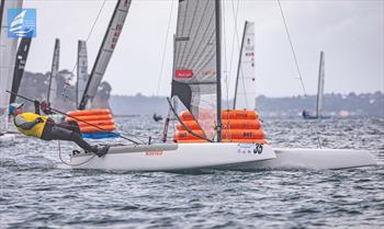 The Classic fleet was decided yesterday when Poland's Jacek Noetzel scored his tenth and final win in the 12 race series. He elected not to start today's races. There was no change in the overnight leaderboard in the Classic (non foiling division) with Jamie Jochheim (AUS) winning Race 12 and placing second in Race 11, to confirm second overall. Class veteran Andrew Landenberger (AUS) was third overall going into the final two races, with New Zealand's Mike Drummond finishing fourth, and top Kiwi in the 29 boat fleet.