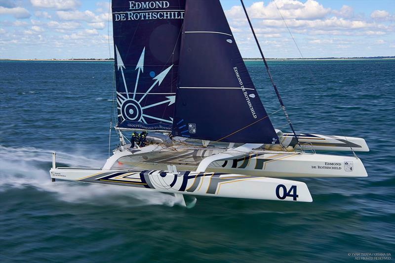The foiling 32 metre long 23 metre beam trimaran Edmond de Rothschild © Team Gitana