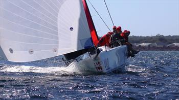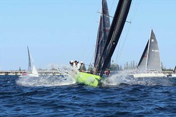 First at the top mark again was 'Tuffan Up' of David Yu and Chris Nelson from Royal Freshwater Bay YC, with club mates, Hamish Carnachan and Peter Mudford sailing 'Neffarious' in second. Third to round was a Geraldton boat 'Mr Fox' sailed by Mark Millman and his new crew Sam Dewers.