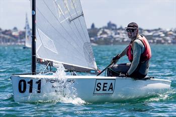 It's been a long time since I've sailed in Finn in those conditions, leach eased, traveller down, hull pounding and body aching, but the sailing as well as the racing was spectacular. It was awesome! Whilst the Race Committee were only looking at 18 - 24 knots, with the seas rolling across the bay with the tide and everything against you, sailing the Finn uphill and down was testing to say the least.