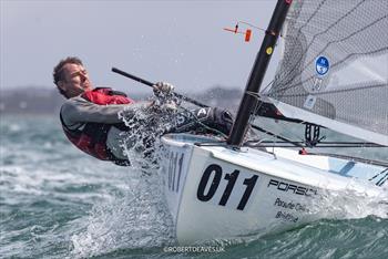Nick began to break clear from Lawrence and I downwind, but we were all equally close again at the next windward mark, with me slightly ahead only for Nick to fly off again downwind to take the race from me, second, and Lawrence third. Tim Carver came through to take fourth and the campaigning Roman Khodykin, having perfectly executed a port start, finding the increased breeze to his liking, finally crossing ahead of the bunch in fifth.