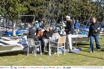 With qualification wrapped and the fleet now split into six groups—Gold, Silver, Bronze, Emerald, Purple, and White—Day 4 of the 29er Europeans kicked off with early optimism and an earlier-than-usual launch in pursuit of the morning breeze.